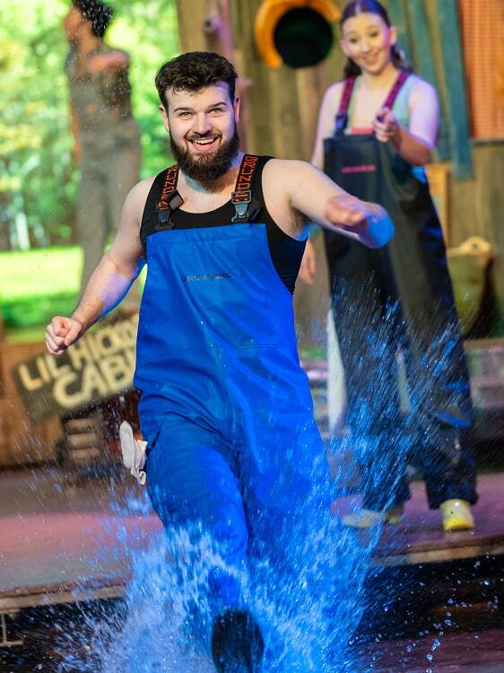 Members of the audience who sit in the front may get a little wet as our hillbillies perform creative dives into the 22-foot-deep swimming hole and our dogs leap across the water to fetch toys and sticks. To try for a spot in the Splash Zone, get our VIP Tickets.